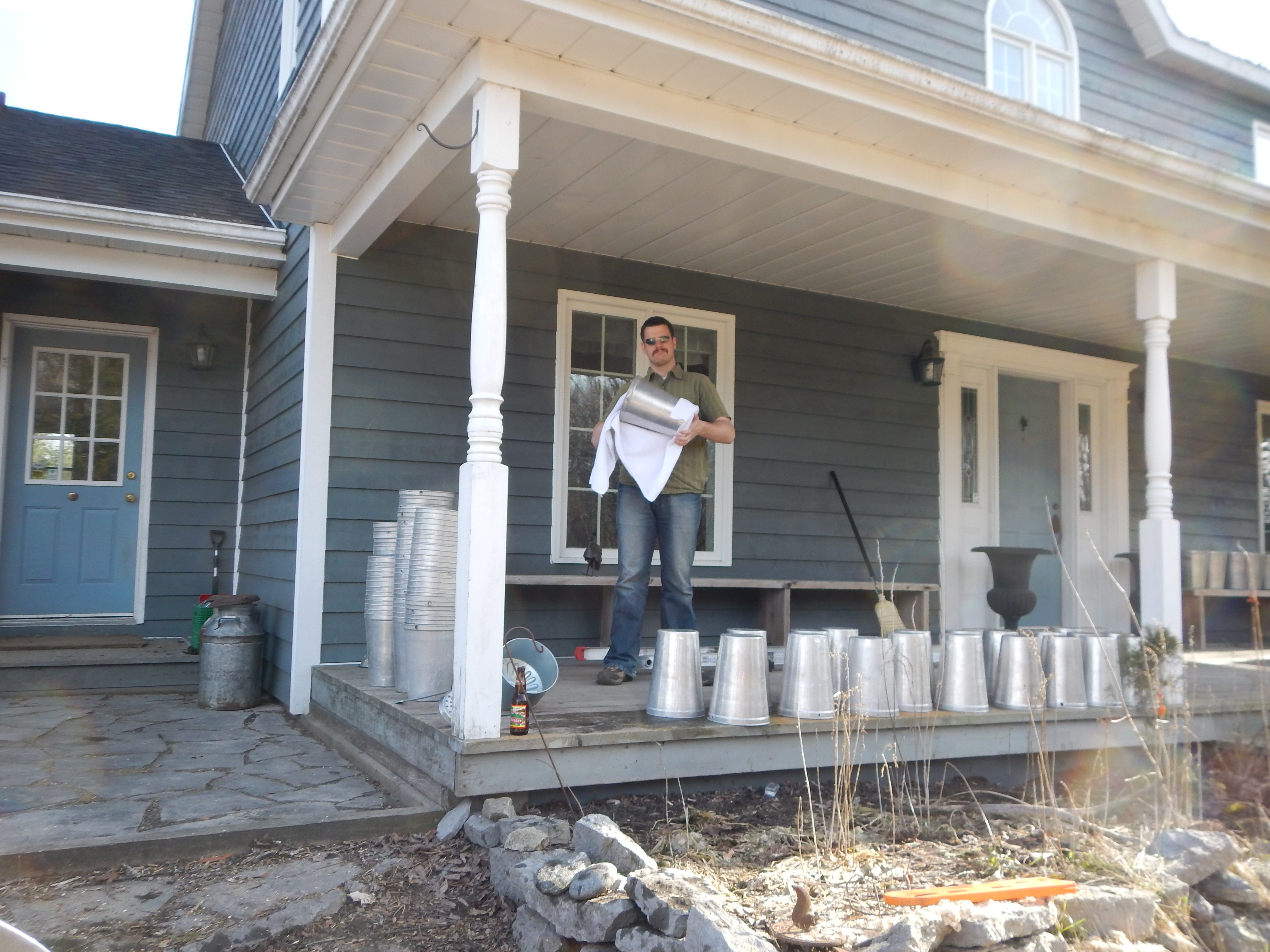 Now I have 150 each of buckets, spiles and lids to wash; the evaporator to scrub out; the finishing unit to scrub out; bottling equipment to clean; the collecting tank, the boiling instruments, the filters, the holding tank; all of this equipment needs to be cleaned before storing them for next year.